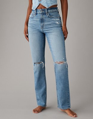 AE Strigid Super High Waisted Baggy Straight Cut Out Jean