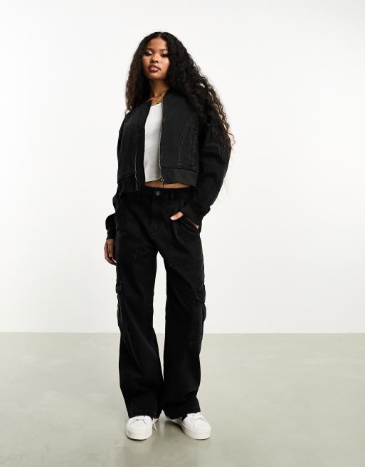 Molly clearance high waist, DTT Petite Molly high waist wide leg cargo jeans in washed black clearance