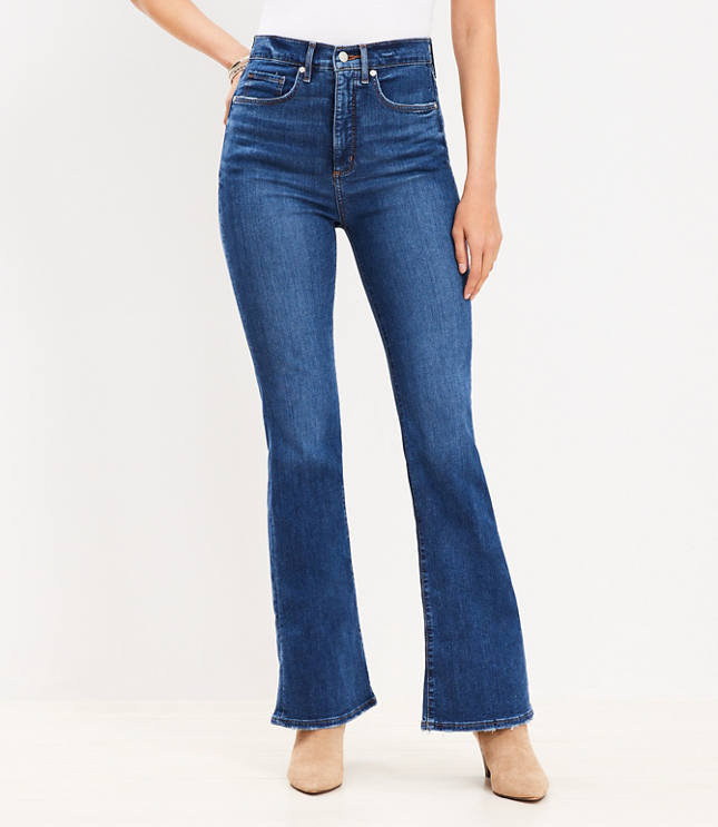 High Rise Slim Flare Jeans in Classic Mid Indigo Wash