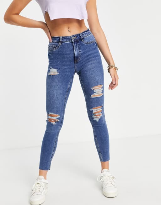 New Look high waist ripped jeans in blue