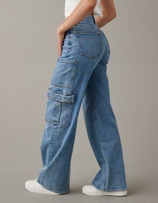 AE Curvy Super High Waisted Baggy Wide Leg Cargo Jean