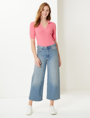 High Waist Wide Leg Cropped Jeans M S Collection M S