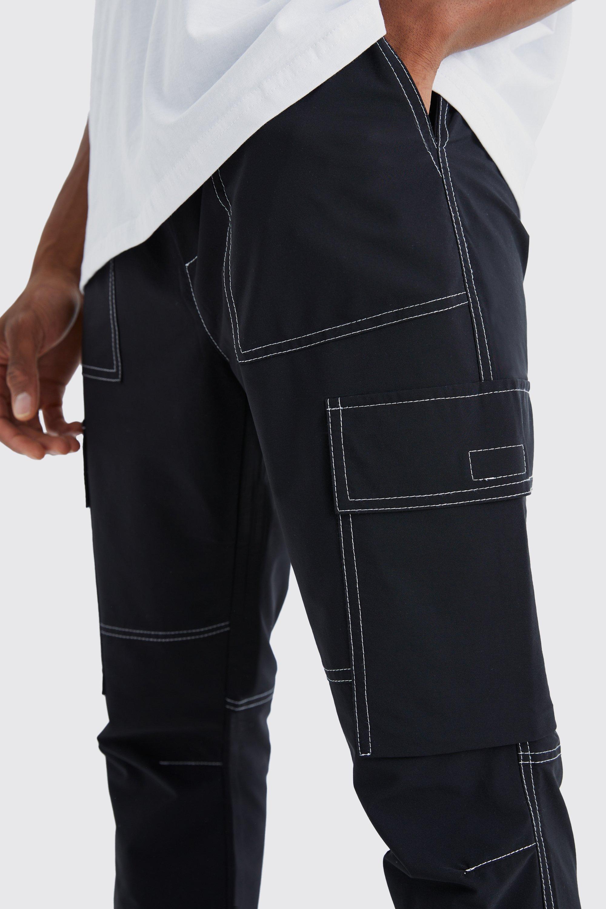 Elastic Waist Slim Flare Contrast Stitch Cargo Trouser boohoo CA
