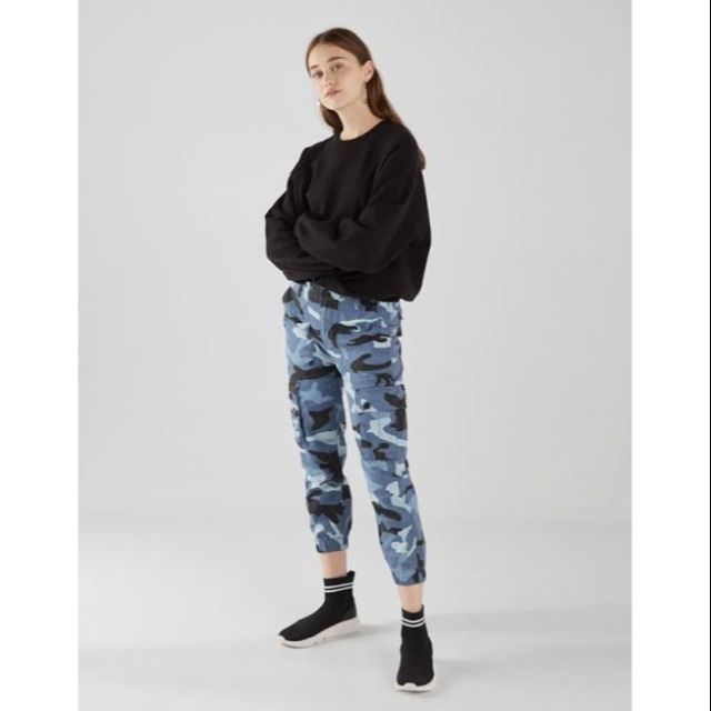 Bershka blue camo clearance pants, Bershka Cow Print Cargo Trousers in Brown Lyst clearance