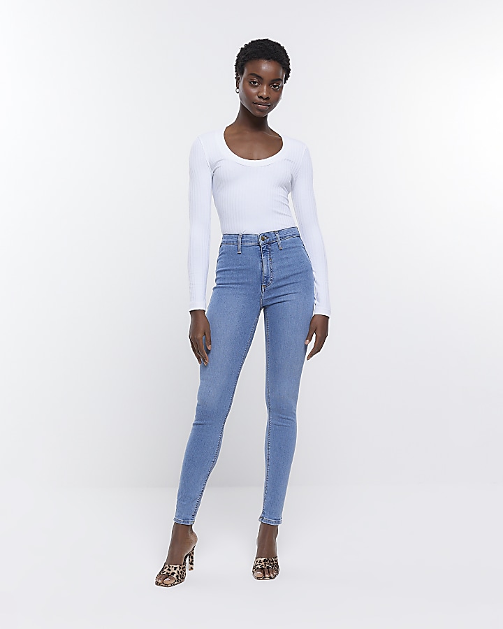 High waisted jeans clearance leggings, Blue high waisted jeggings clearance