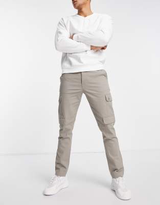 ASOS DESIGN slim fit cargo pants in washed khaki ASOS