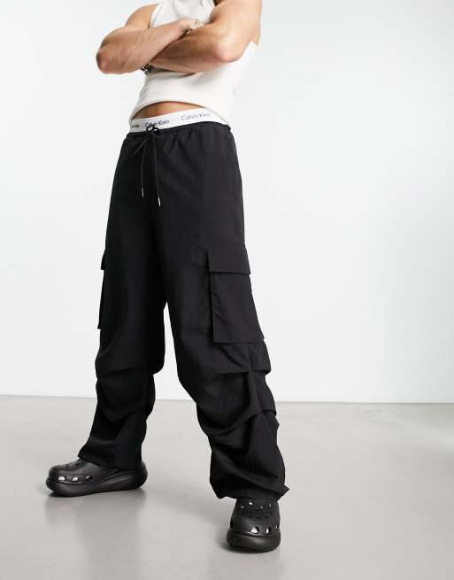 Oversize clearance cargo pants, COLLUSION oversized cargo pants in black clearance