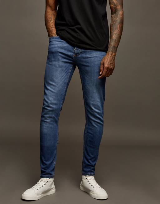 Topman cotton blend stretch slim jeans in mid wash ASOS