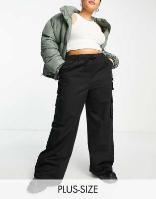 Missguided Plus Wide Leg Cargo Pants In Black ModeSens
