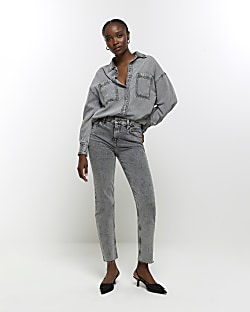 Grey high waisted slim straight jeans River Island