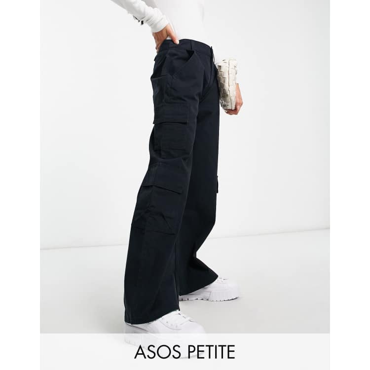 ASOS DESIGN Petite oversized cargo pants with multi pocket in black