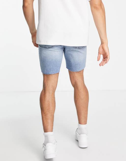Topman slim denim short in mid wash