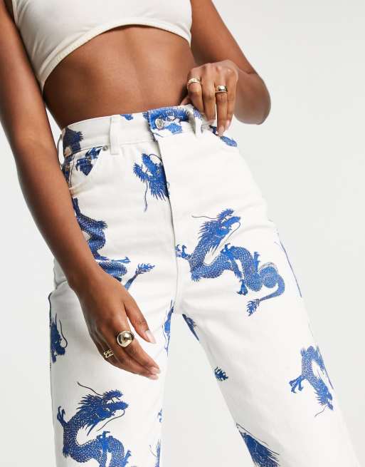 Topshop oversized Mom jeans with dragon print in white ASOS