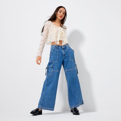 Loosely Delicate Arizona Lace Top Low Rise Baggy Cargo Jeans