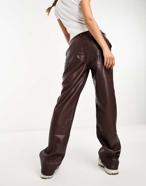 ASOS DESIGN faux leather straight leg trousers in brown
