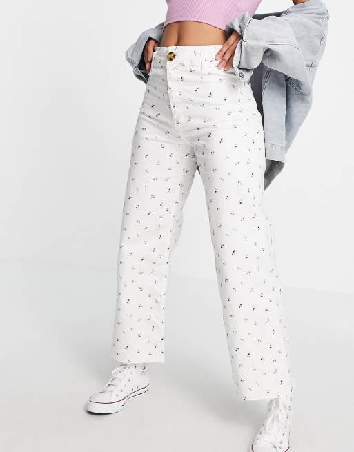 White jeans with clearance flowers, White Floral Blue Jeans Rebecca Marie clearance