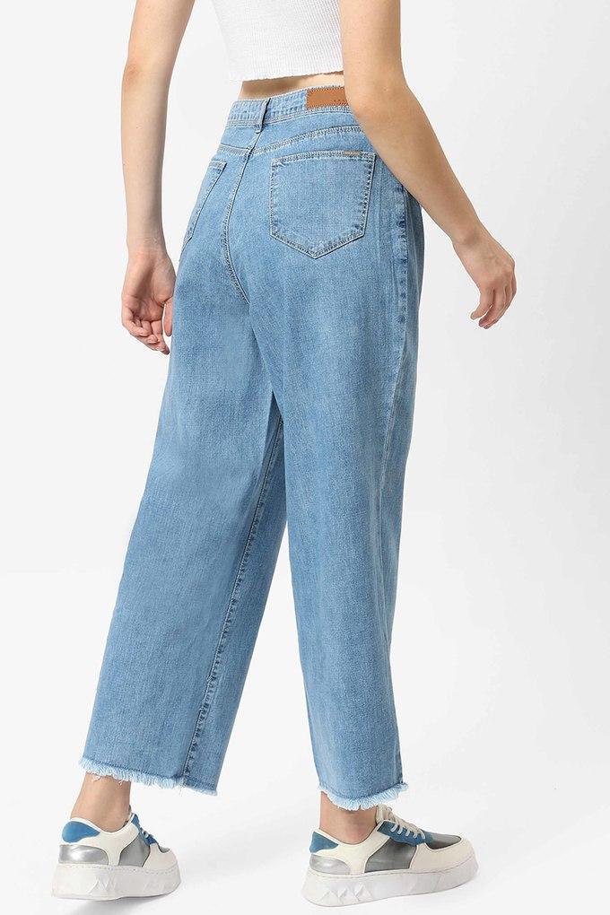 Buy KRAUS Blue Wide Fit Ankle Length Cotton Womens Jeans