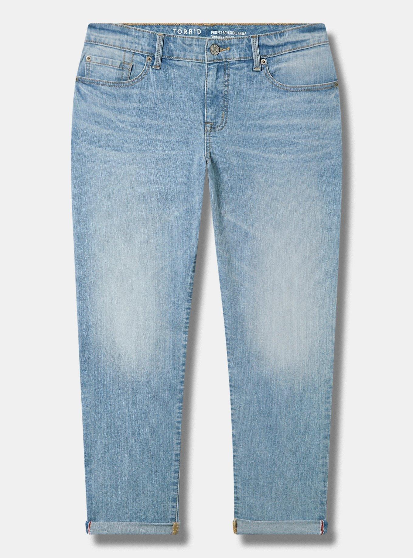 Plus Size Perfect Boyfriend Ankle Vintage Stretch Mid Rise Jean