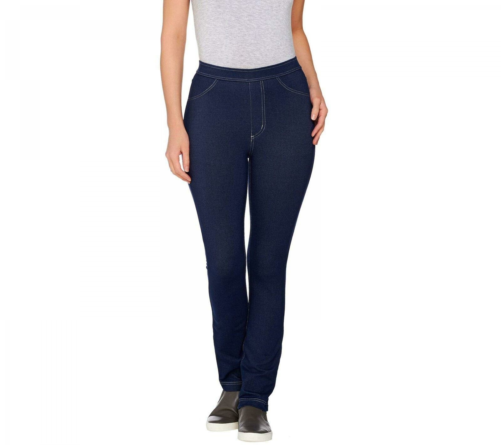 Susan Graver Women s Weekend Knit Jeggings with Contrast Stitching Indigo XXS