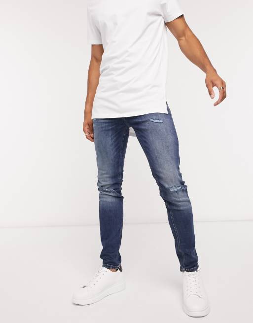Jack Jones Intelligence Liam skinny fit jeans with rips in mid
