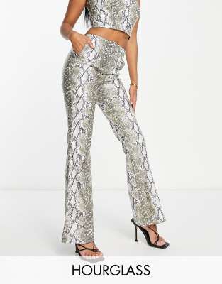 Snake print flared clearance trousers, ASOS DESIGN Hourglass faux leather flare trouser in snake print co ord clearance