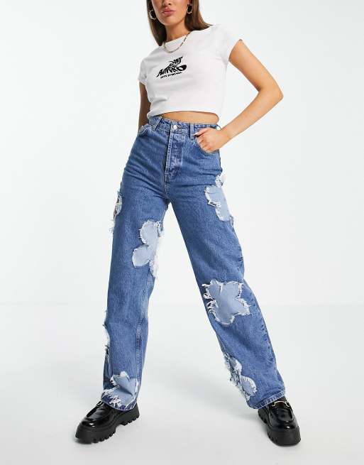 Jeans with flower clearance patches, DIY Patchwork Jeans Easy No Sew Project Mod Podge Rocks clearance