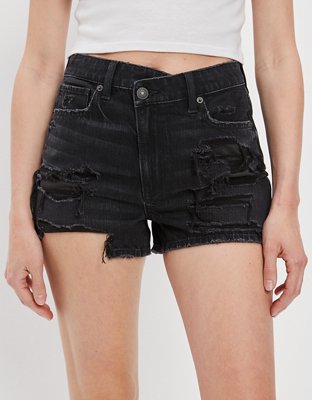 American Eagle Hi Rise Festival Black Jean Shorts Size 4 Demin Mom Wedgie Fit