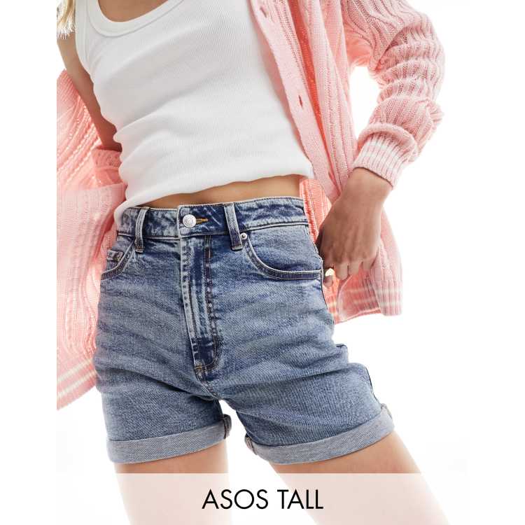 Womens tall denim clearance shorts, ASOS DESIGN Tall denim comfort mom short in midwash blue clearance