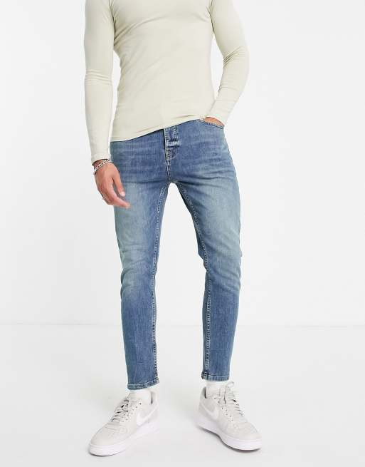 Topman stretch tapered jeans in mid wash green cast tint