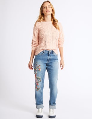 PETITE Embroidered Mid Rise Jeans M S Collection M S