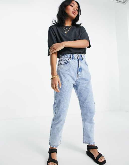 Pull bear Petite high waist slim mom jean in light blue ASOS