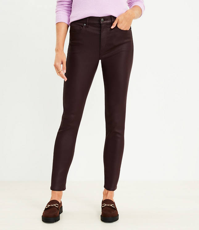 Petite Coated High Rise Skinny Jeans in Rich Bordeaux