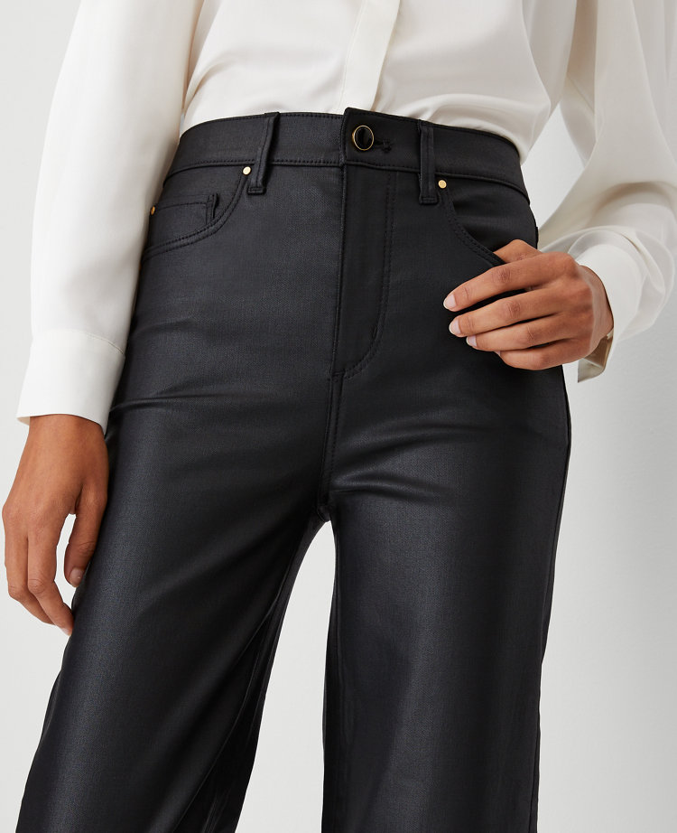 Petite Coated High Rise Straight Jeans in Black