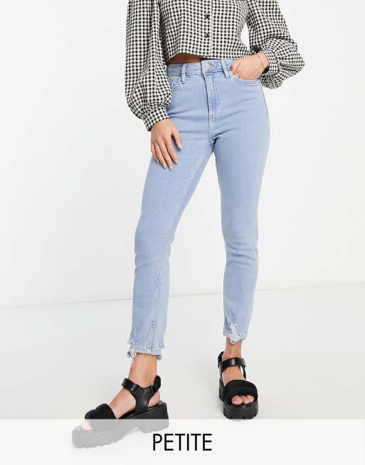 Miss Selfridge Petite Lizzie skinny jeans with fray hem in lightwash blue