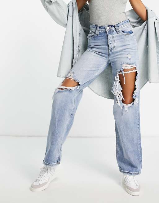 Mom jeans thrift clearance store, Free People Thrift Store distressed straight leg jeans in blue clearance