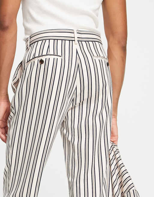 Striped clearance tapered pants, ASOS DESIGN oversized tapered suit trousers in off white and navy clearance