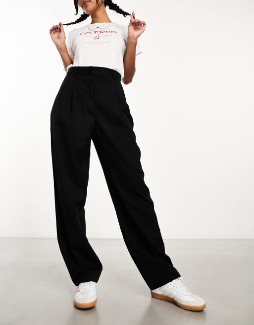 Monki tapered leg trousers with pleat front in black ASOS