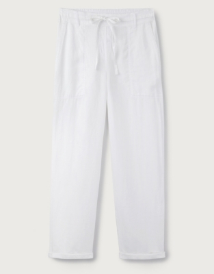 White tapered linen clearance trousers, White Linen Slim Leg Cropped Trouser Pure Collection clearance