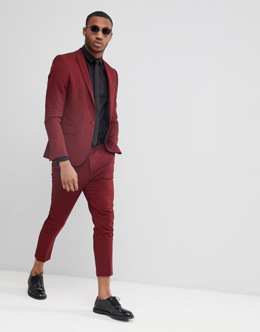 ASOS DESIGN Tapered Suit Trousers In Burgundy ASOS