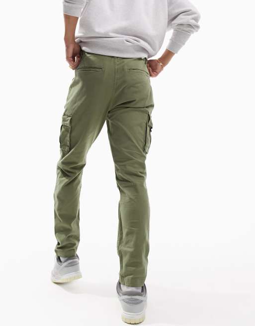 Khaki Green Regular Tapered Stretch Utility Cargo Trousers