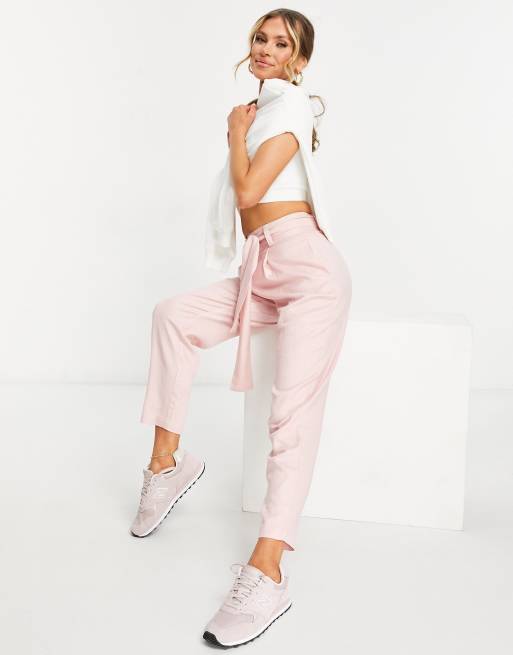 Pink clearance tapered pants, ASOS DESIGN belted tapered linen trousers in pink clearance