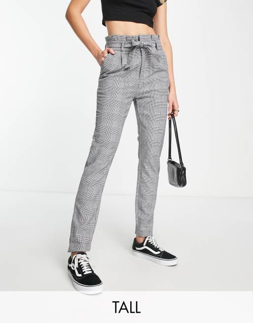 Vero Moda Tall tapered trousers with tie front in grey check ASOS