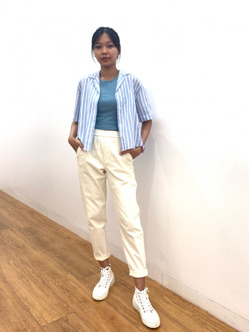 Check styling ideas for Denim Jersey Tapered Trousers UNIQLO IN