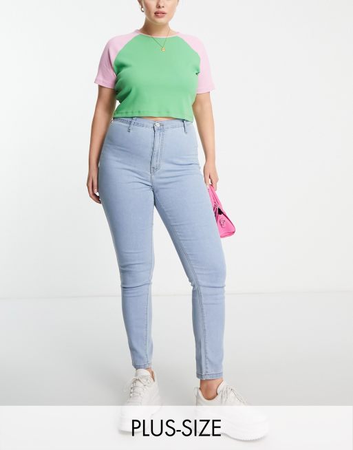 DTT Plus Chloe high waisted disco stretch skinny jeans in light