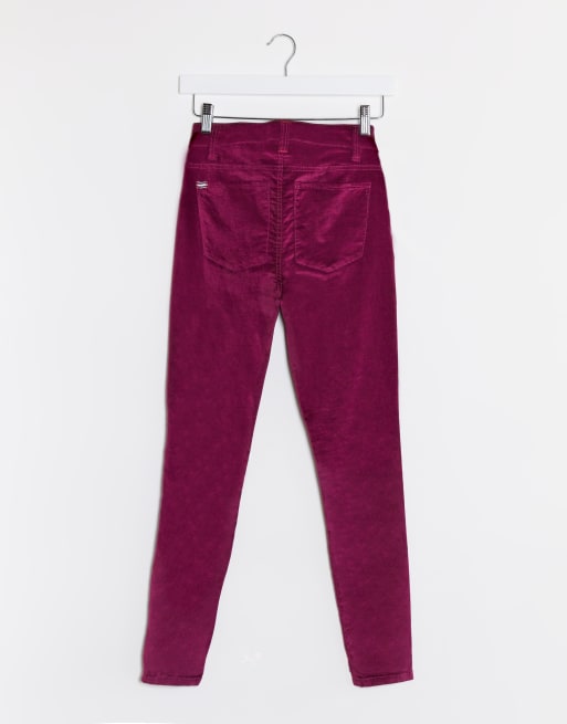 Alice Olivia Jeans high rise velvet jeans with exposed buttons in purple
