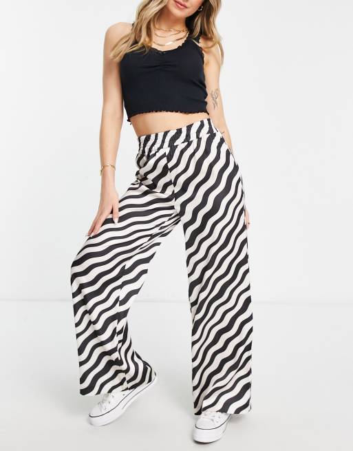 Womens black trousers clearance with white stripe, New Look satin wide leg trousers in black and whites stripe clearance