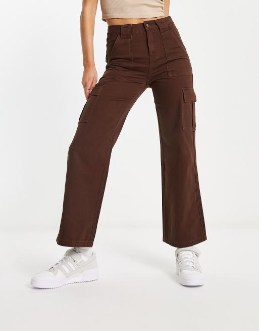 Urban Revivo straight leg cargo denim jeans in burgundy