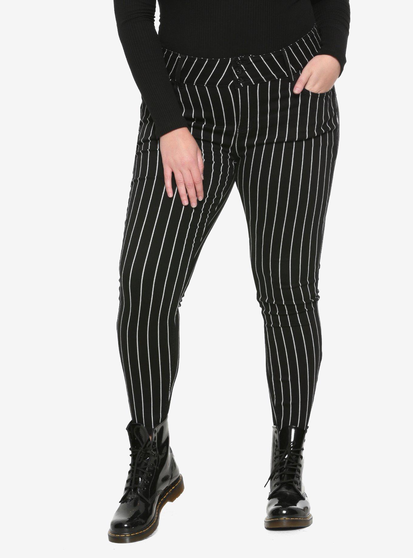 HT Denim Black White Pinstripe Hi Rise Super Skinny Jeans Plus Size