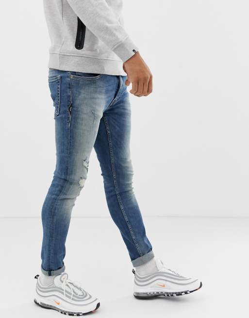 Chasin Ego Blaidd rip and repair slim jeans in dark wash ASOS