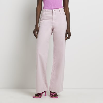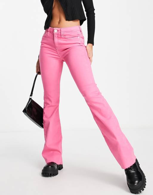 River island pink clearance jeans, River Island Plus high rise flare jean in coral pink clearance